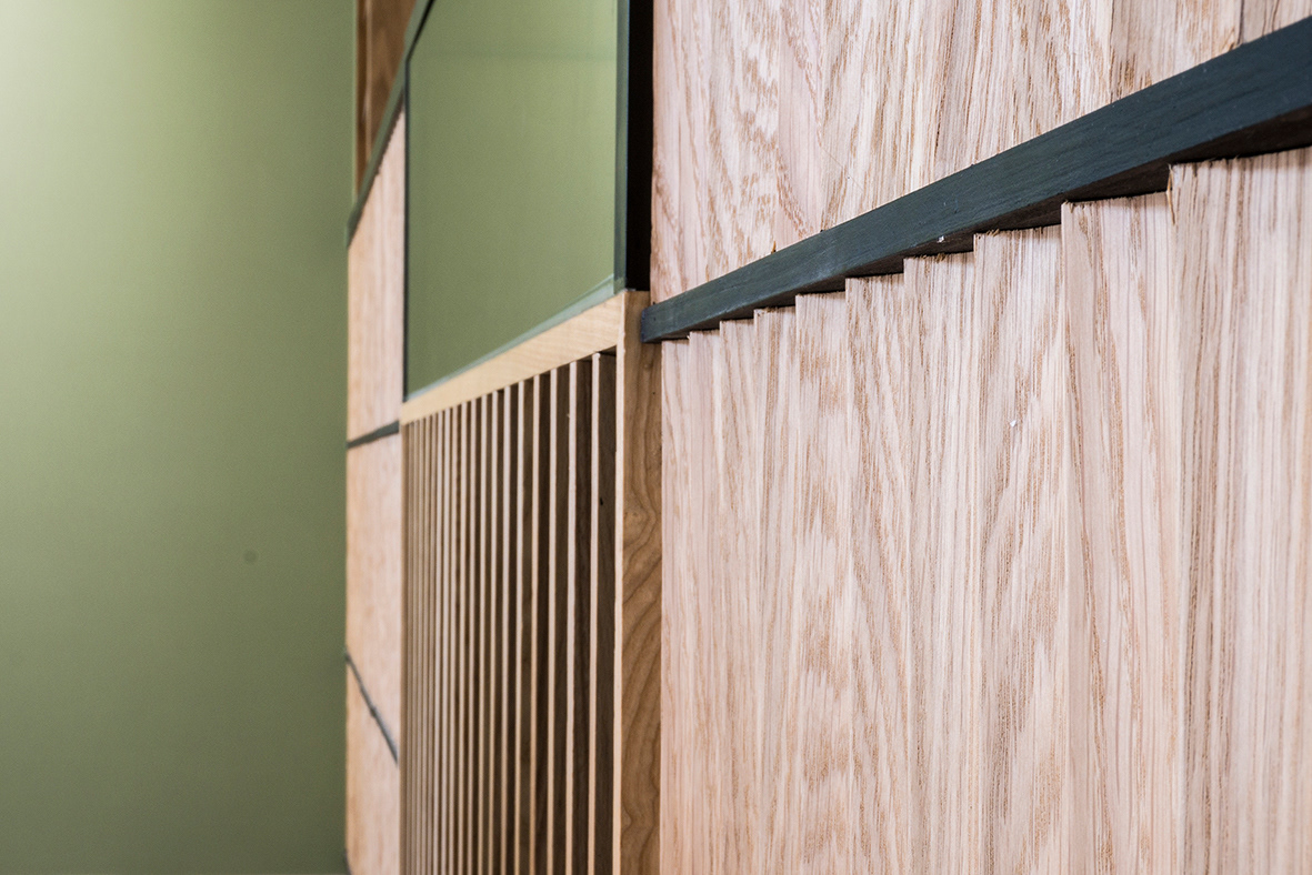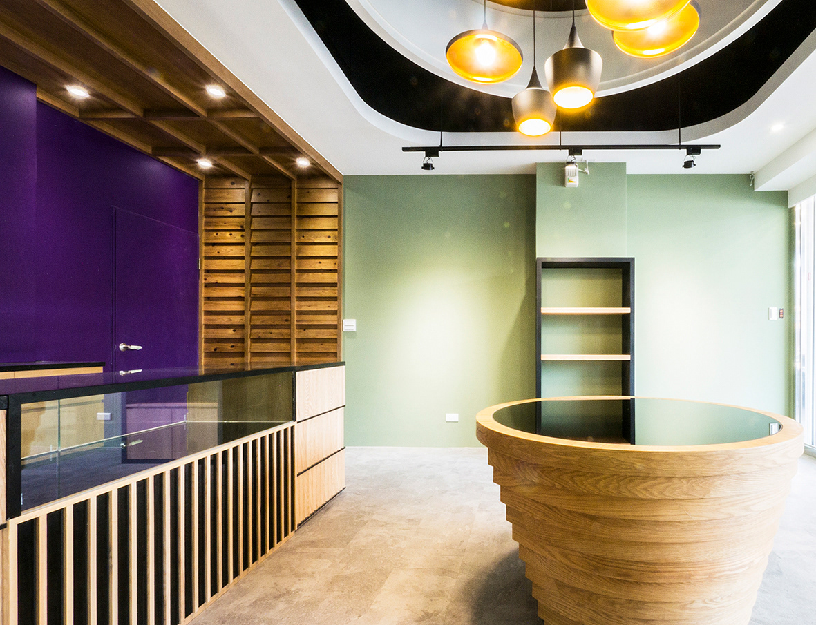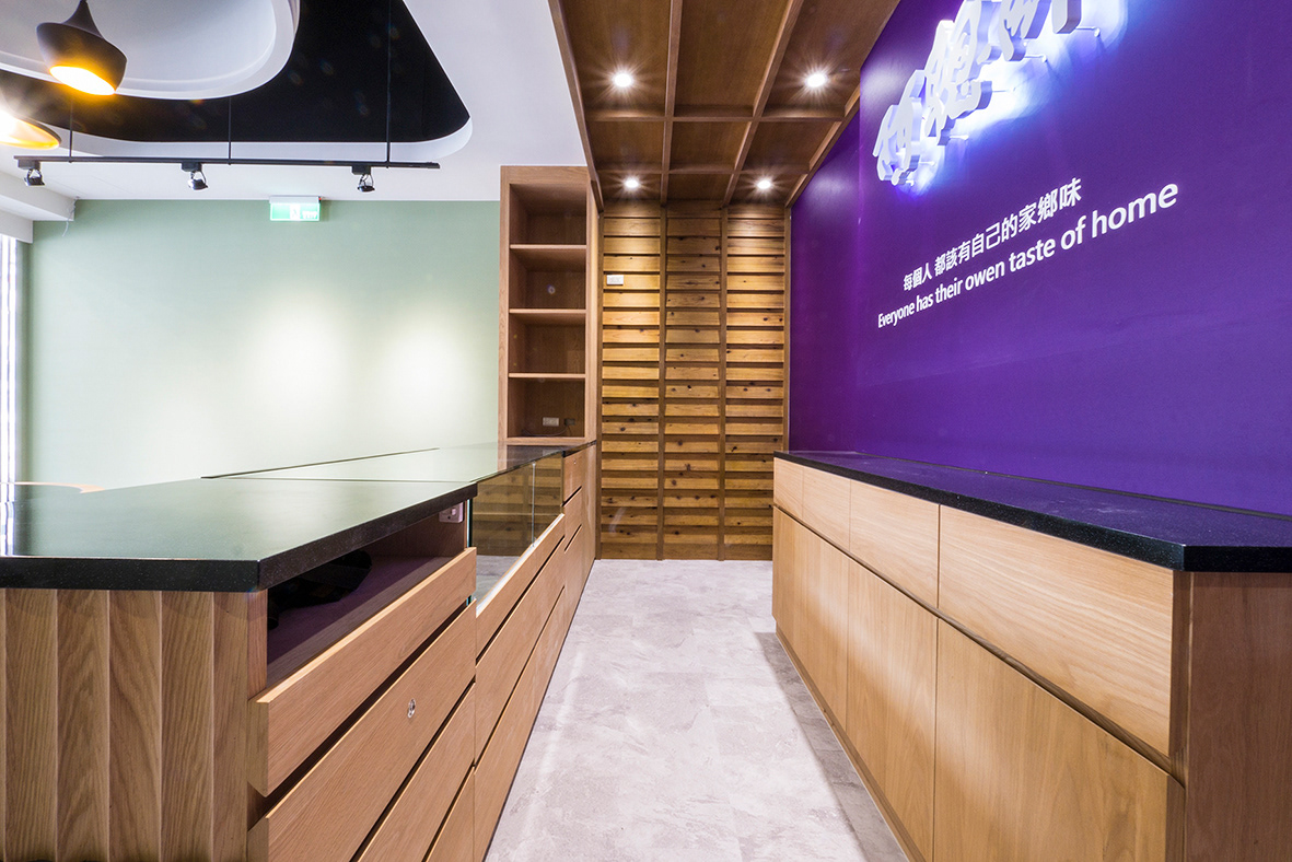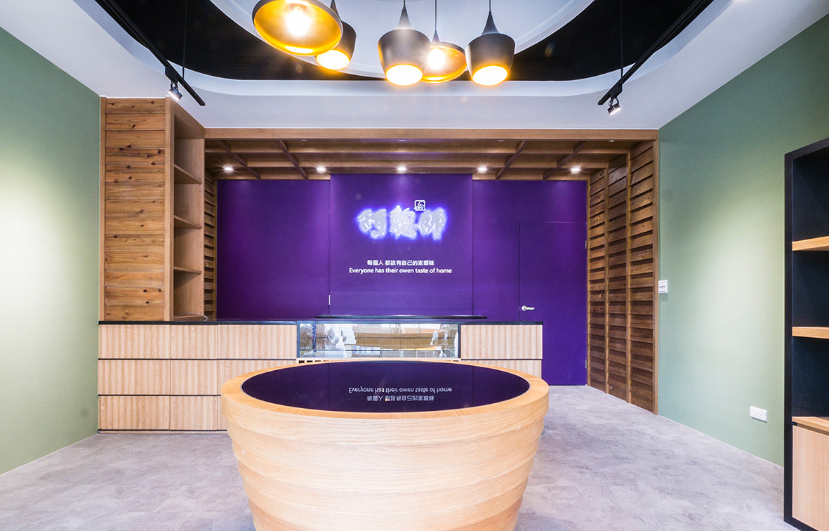 多層次的包覆疊合讓酥餅口感豐富,傳統繁複的工法所做出的糕餅更是讓人回憶起兒時只能小口小口地小心翼翼的品味那得來不易的點心。 這次我們以阿聰師糕餅職人的精神提取出「層、疊、圓」的概念來傳達出對芋頭酥用心繁瑣技術的敬意,再帶入傳統木屋的溫潤,使來訪客人在品味口感豐富美味的糕餅時也讓人聯想起記憶中街頭巷尾那親切的人情味讓內心多了份親切的溫暖。