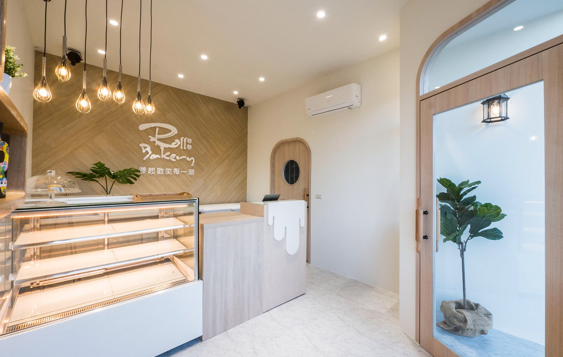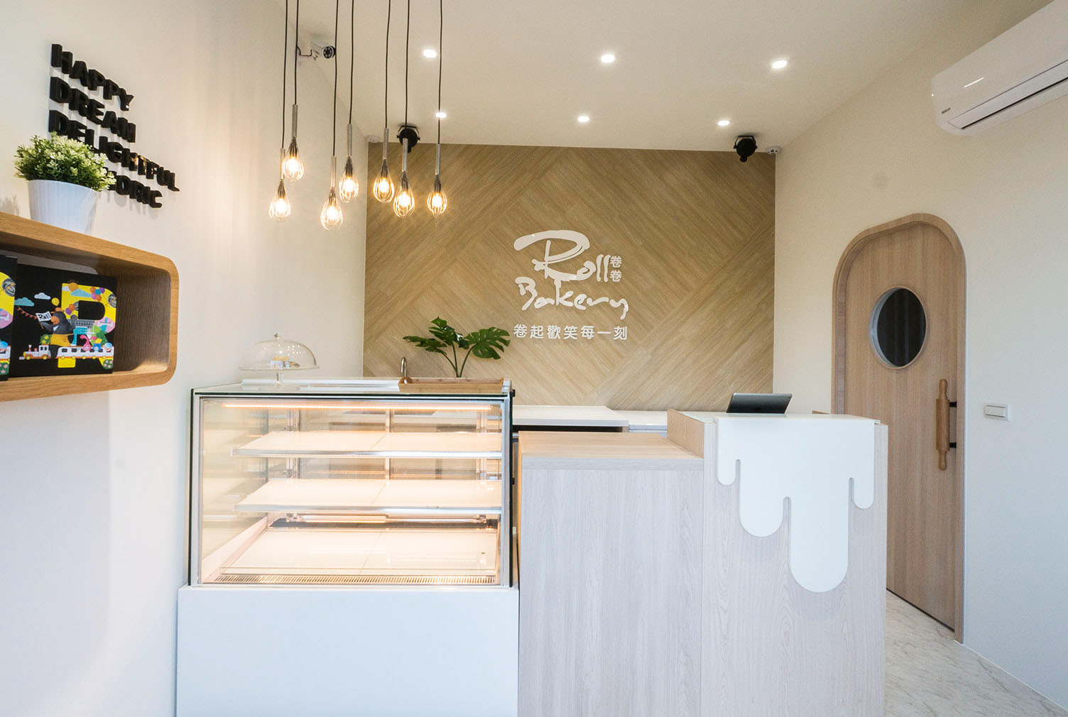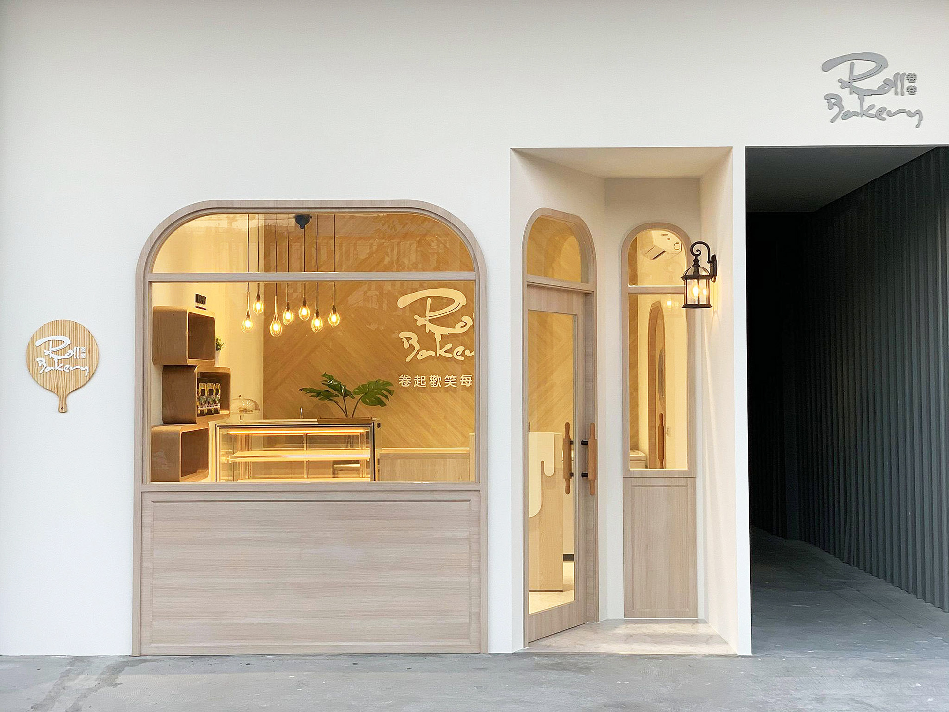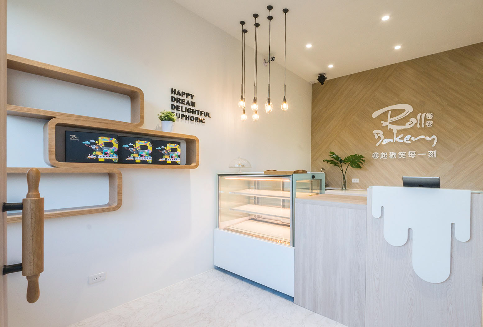 「卷起歡笑的每一刻」 是卷卷烘焙最想要傳達給每位顧客的核心價值,在如何傳達歡樂與呈現繽紛產品的過程中,我們與品牌公司及業主間不斷地討論與修正,最終,我們決定讓空間以最佳配角的方式來突顯多元繽紛的產品,以烘焙器具的元素點綴空間,導入烘焙就在你我的生活中以如此平易近人的概念並且讓溫潤的空間色系來溫暖每一位進入門市的顧客,將歡樂帶給別人,把溫暖留給自己。 店外刻意縮減的門窗尺度猶如童話故事般的小屋,可愛得讓人迫不及待的想入門探索一番。